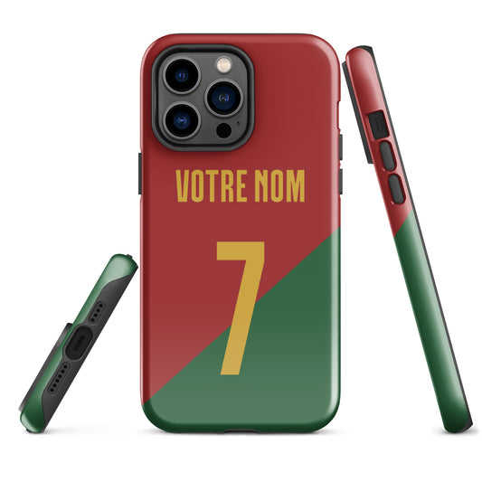 Coque iPhone rigide double protection "Maillot Portugal" personnalisable