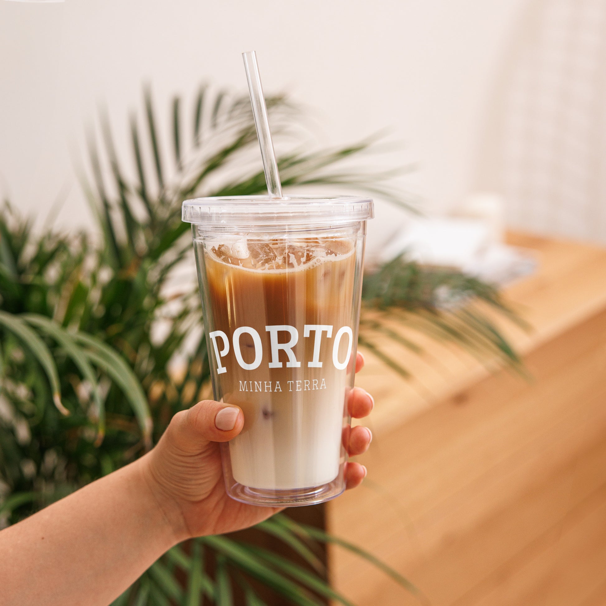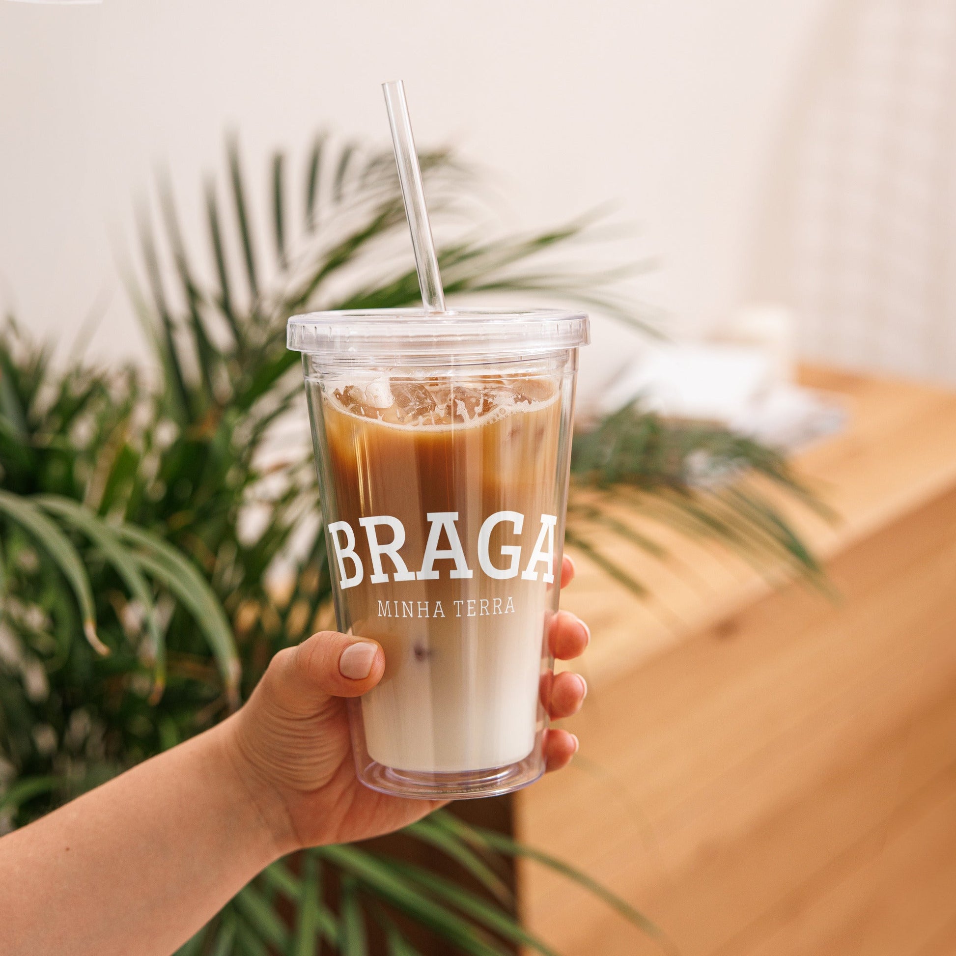 Gobelet isotherme double paroi en plastique réutilisable imprimé "Minha Terra" personnalisable avec la ville de votre choix.